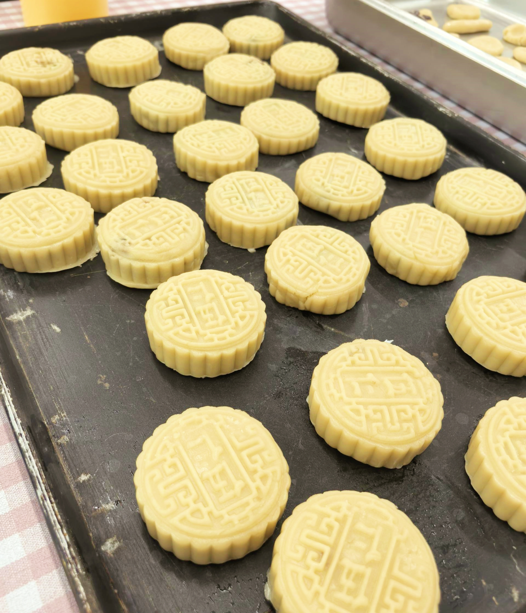 活動(dòng)現(xiàn)場,大家圍坐一圈,桌上擺滿了各式各樣的月餅原料與精致的制作工具,仿佛是一場即將展開的美食盛宴。專業(yè)的烘焙老師詳細(xì)講解了月餅的制作方法并進(jìn)行示范,大家興致勃勃地嘗試分餡、捏皮、包餡,再將月餅壓模成型、送入烤箱烘烤,每一步都充滿了樂趣和挑戰(zhàn),凝聚了大家的專注與創(chuàng)意。盡管不少人是首次嘗試,但大家的熱情和認(rèn)真勁頭絲毫不減,活動(dòng)現(xiàn)場也充滿了輕松愉快的氛圍,笑語歡聲此起彼伏。