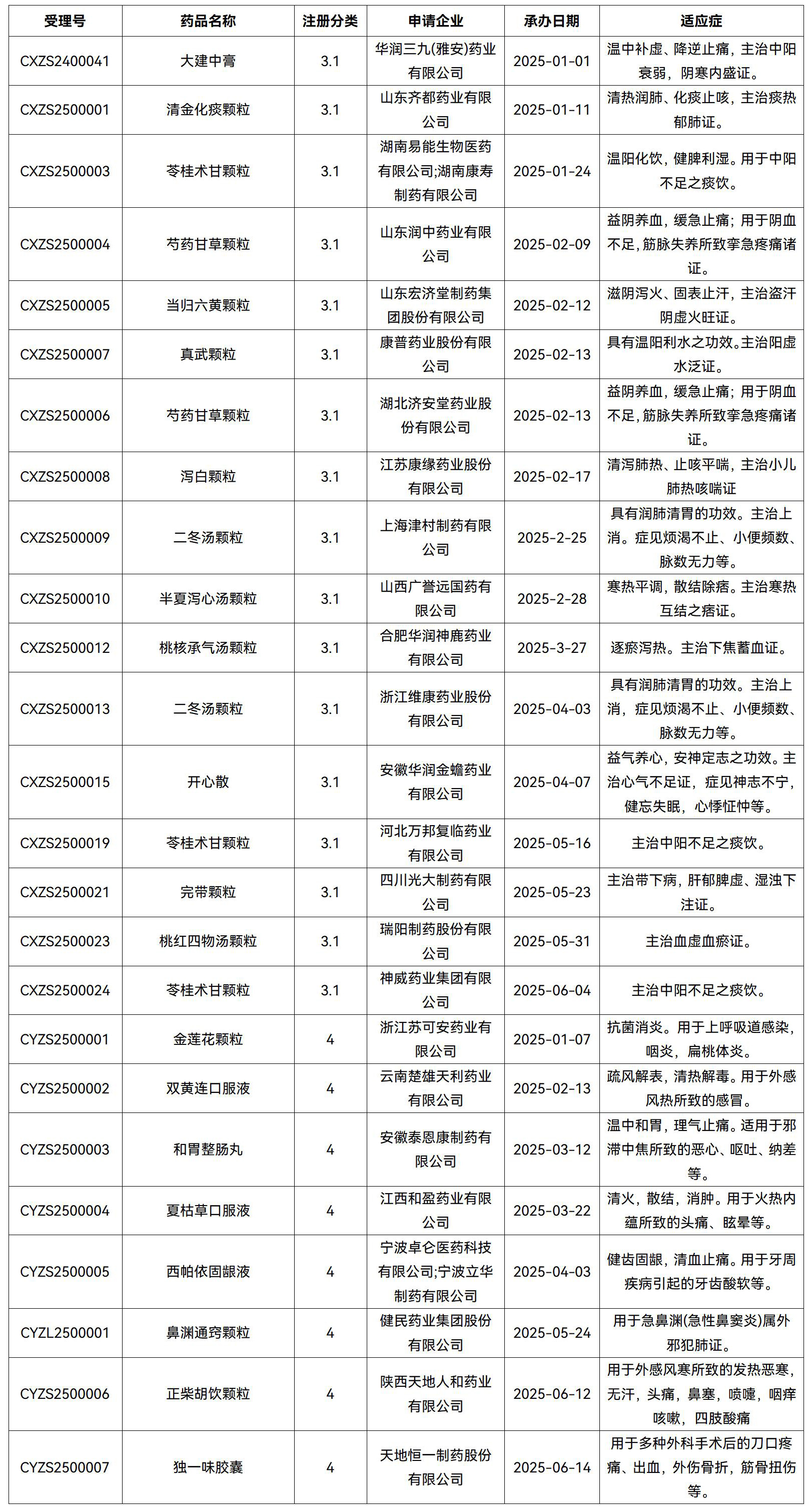 2025年6月經(jīng)典名方及同名同方受理審批月報