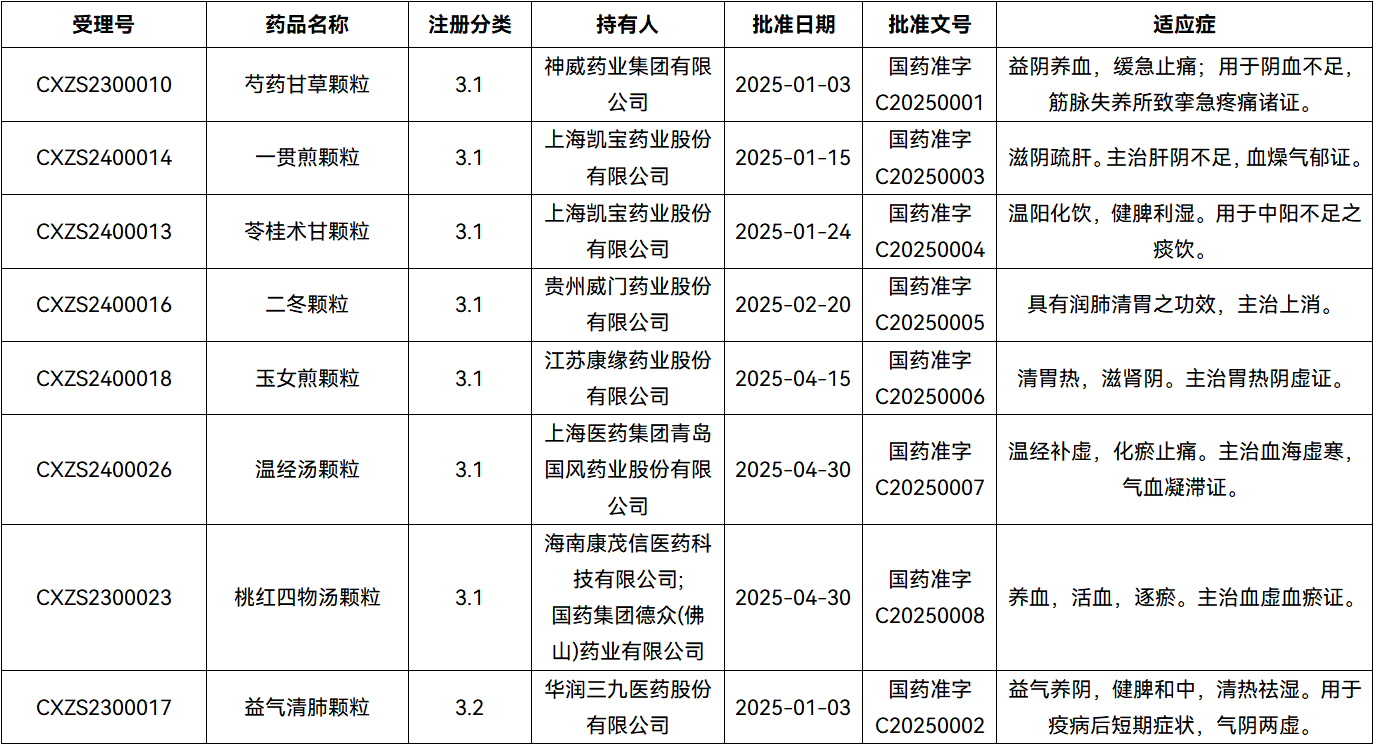 2025年1-6月經(jīng)典名方及同名同方批準(zhǔn)情況