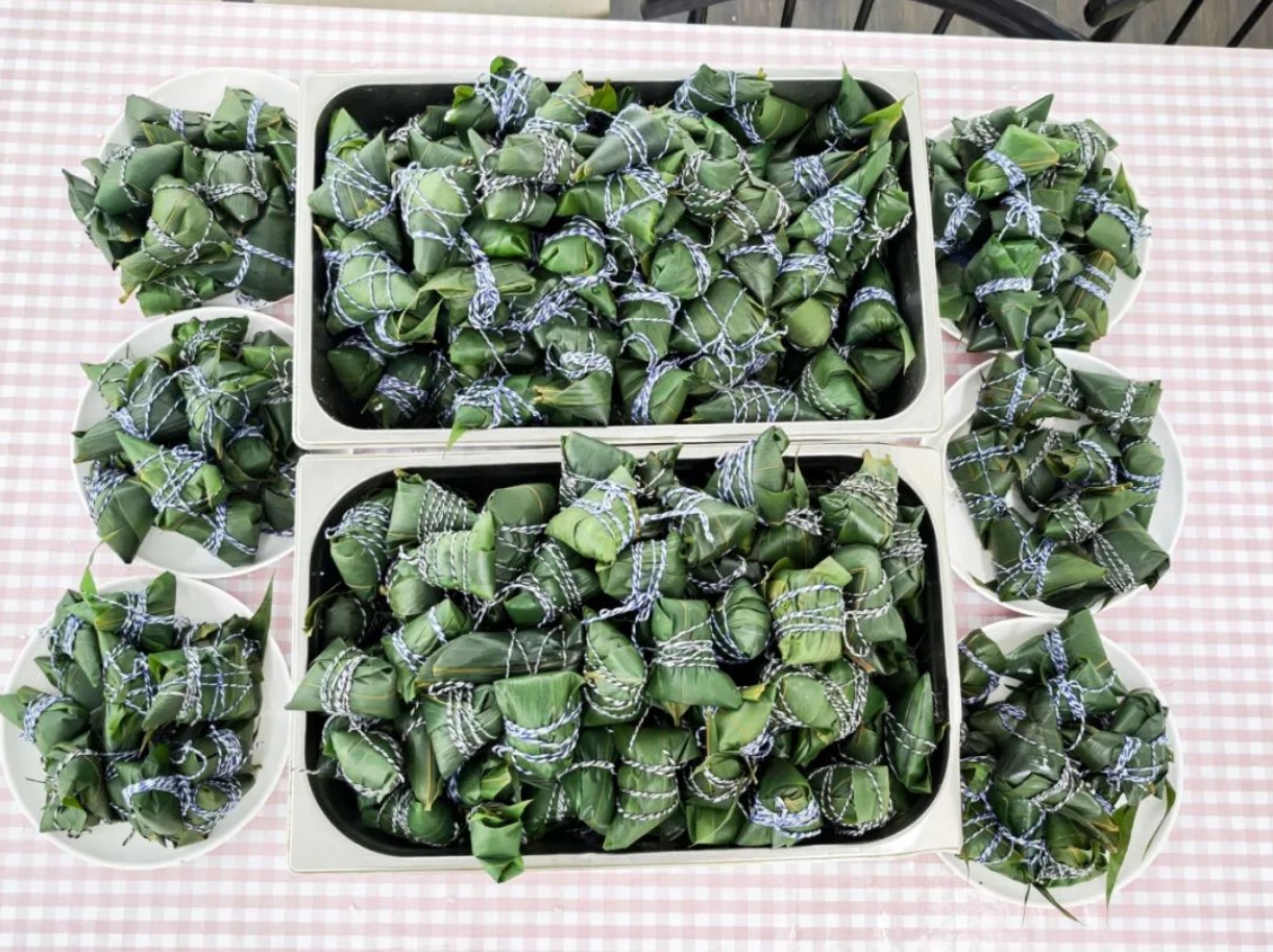 隨后食堂面點師傅演示"四角粽"標(biāo)準(zhǔn)包法,特別融入企業(yè)特色——用不同顏色棉線區(qū)分藥材功效類別:"紅色線代表活血類餡料,綠色線對應(yīng)健脾類..."這種可視化設(shè)計讓員工在實操中加深對藥材特性的理解。