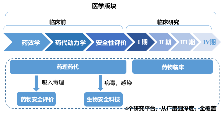 醫(yī)學(xué)版塊簡單說即藥物應(yīng)用從動物到人的過程。臨床前研究包括藥效學(xué)、藥代動力學(xué)以及毒理學(xué)安全性評價(jià)研究等。臨床階段需要在人體上進(jìn)行試驗(yàn),因此藥物進(jìn)入臨床研究前必須得到國家藥品監(jiān)督管理部門的審批。在中國,新藥的研發(fā)機(jī)構(gòu)需要向國家藥品監(jiān)督管理局(National Medical Products Administration,NMPA)提交新藥臨床申請(investigational new drug, IND),獲得許可后才能進(jìn)行人體臨床試驗(yàn)。臨床研究還需要分為四個(gè)階段:Ⅰ期臨床試驗(yàn),Ⅱ期臨床試驗(yàn),Ⅲ期臨床試驗(yàn)和IV期臨床研究(藥物上市后監(jiān)測)。